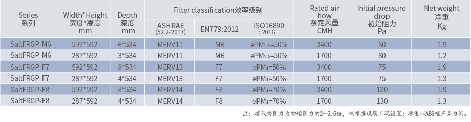 耐盐腐玻纤袋式过滤器——SaltFRGP-F8级;作为好的中效过滤器,适用于远洋和海港各类通风过滤的应用,如燃机、泵浦、空压机、重柴电机和其他通风系统提供保护;用户的设备在其好的尘埃过滤及抗盐腐性能的保护下获得更好的运行性能的提升,且更换维护工作简便易行。